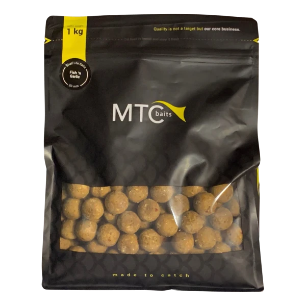 Fish ’n Garlic oftewel vismeel en knoflookpoeder. Een kruidige vismeelmix – we hebben ook een handjevol chilivlokken toegevoegd – blijft onveranderd populair onder karpervissers. Deze voedzame én gezonde combinatie is al decennialang een voltreffer. In deze bol is géén flavour verwerkt. Het milde natuurlijke aroma komt puur voort uit de uitgekiende samenstelling van LT-Vismeel, Knoflookpoeder en Chilivlokken. Vangstresultaten uit het verleden bieden zeker een vangstgarantie voor de toekomst met deze boilie. Deze variant van de Mtc Baits Shelf Life range bestaat uit 16, 20 en 24mm.